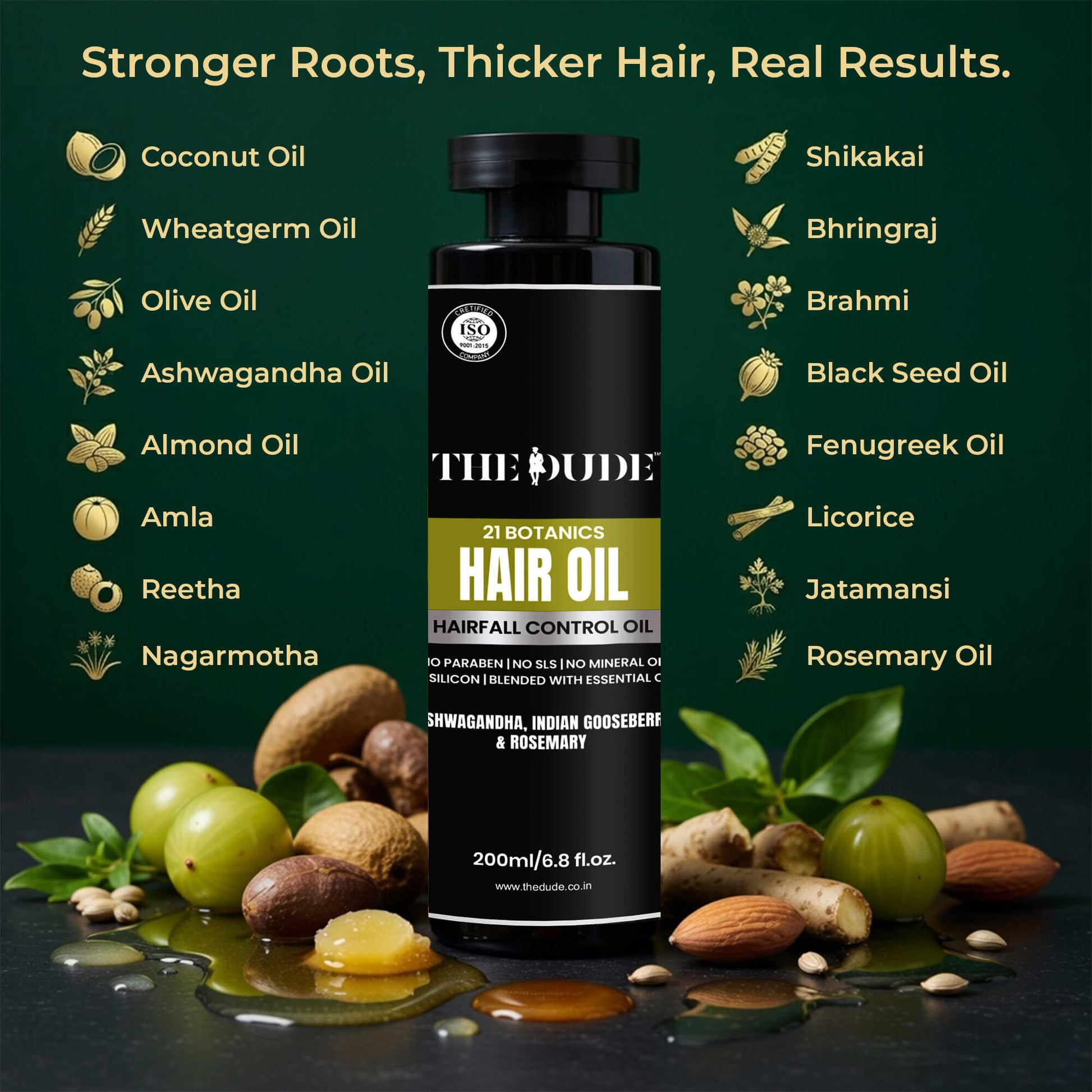 Yes, THE DUDE 21 Botanics Hairfall Control Hair Oil for Men is formulated with 21 natural botanicals, including Ashwagandha, Brahmi, and Rosemary, making it a powerful hair fall control oil that strengthens roots and reduces hair breakage.