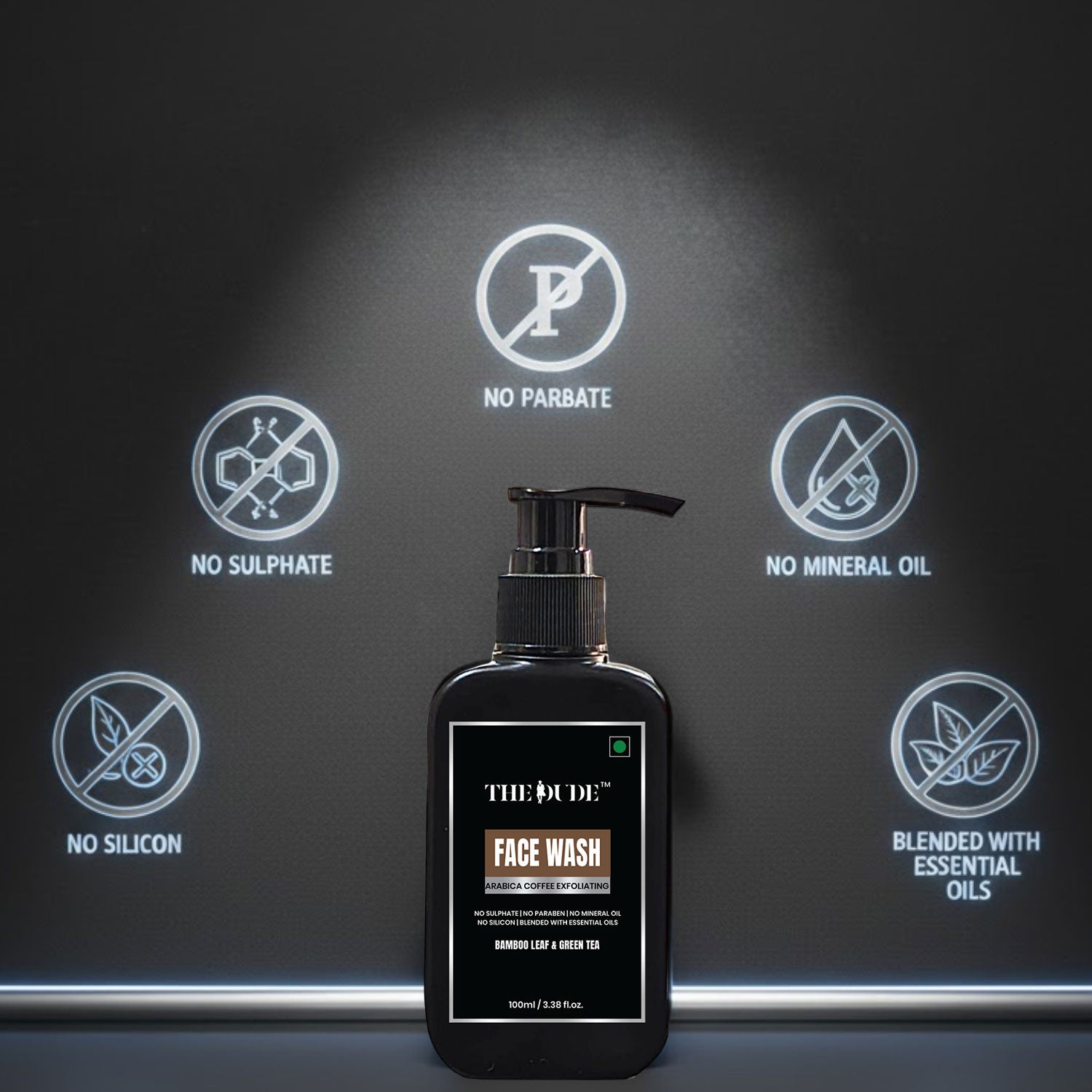 THE DUDE Coffee Exfoliating Face Wash for Men - 100 ml | Arabica Coffee Bamboo Green Tea | Gently Exfoliates & Revives Dull Skin