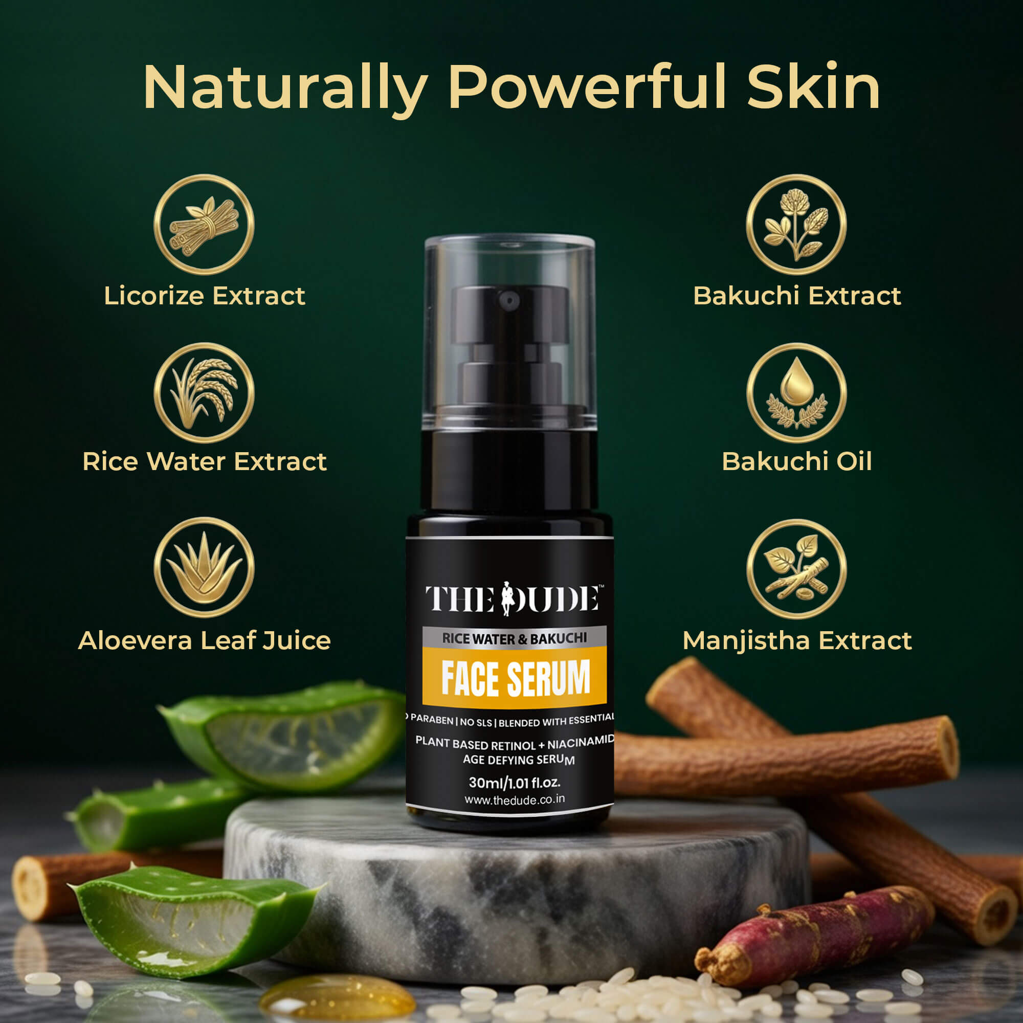 THE DUDE Rice Water & Bakuchi Face Serum for Men - 30 ml | Plant Based Retinol Niacinamide | Improves Texture & Fine Lines